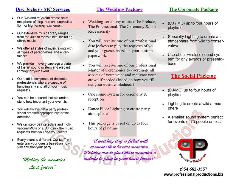 Professional Productions can handle any size production from a small house party to a large Corporate Even